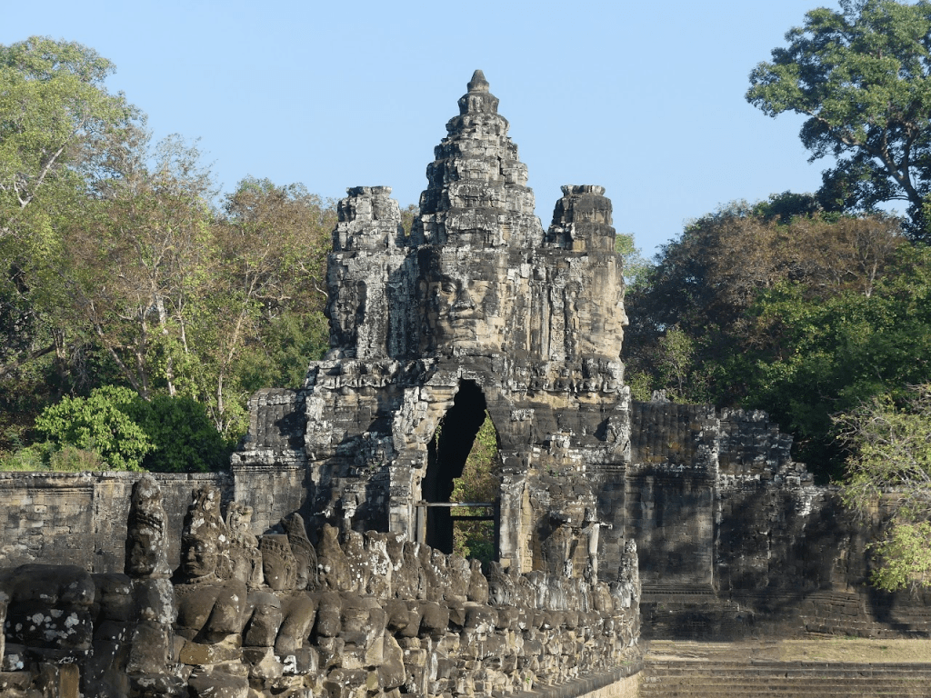 When many think of Angkor Wat, they think of the beautiful temple with the reflecting pond in front. This is indeed the temple of Angkor Wat, but there are 1080 temples, many built by different kings during their rule: new king, new temple. People of the Man ethnicity from China married Indians that had arrived by sea, creating the Cambodian race. We visited three of the temples: Angkor Thom, Ta Phrom, and Angkor Wat. Many enjoy seeing the sun rise at Angkor Wat; our visit was in the afternoon so we could see the sun set there.