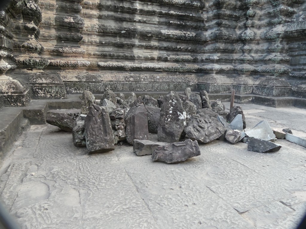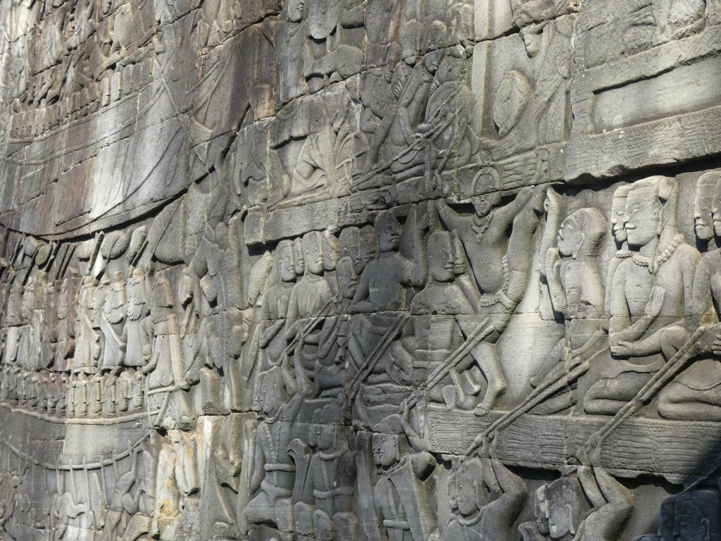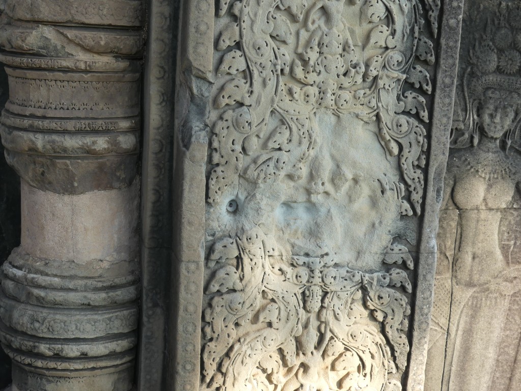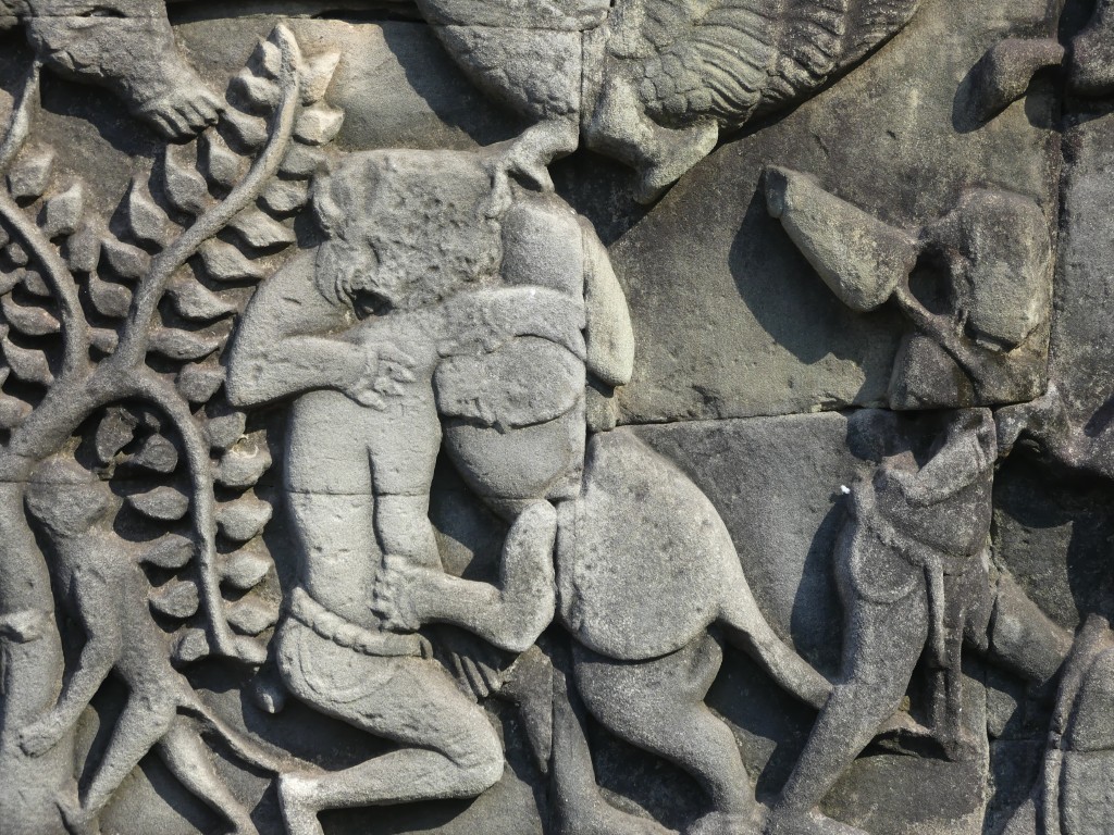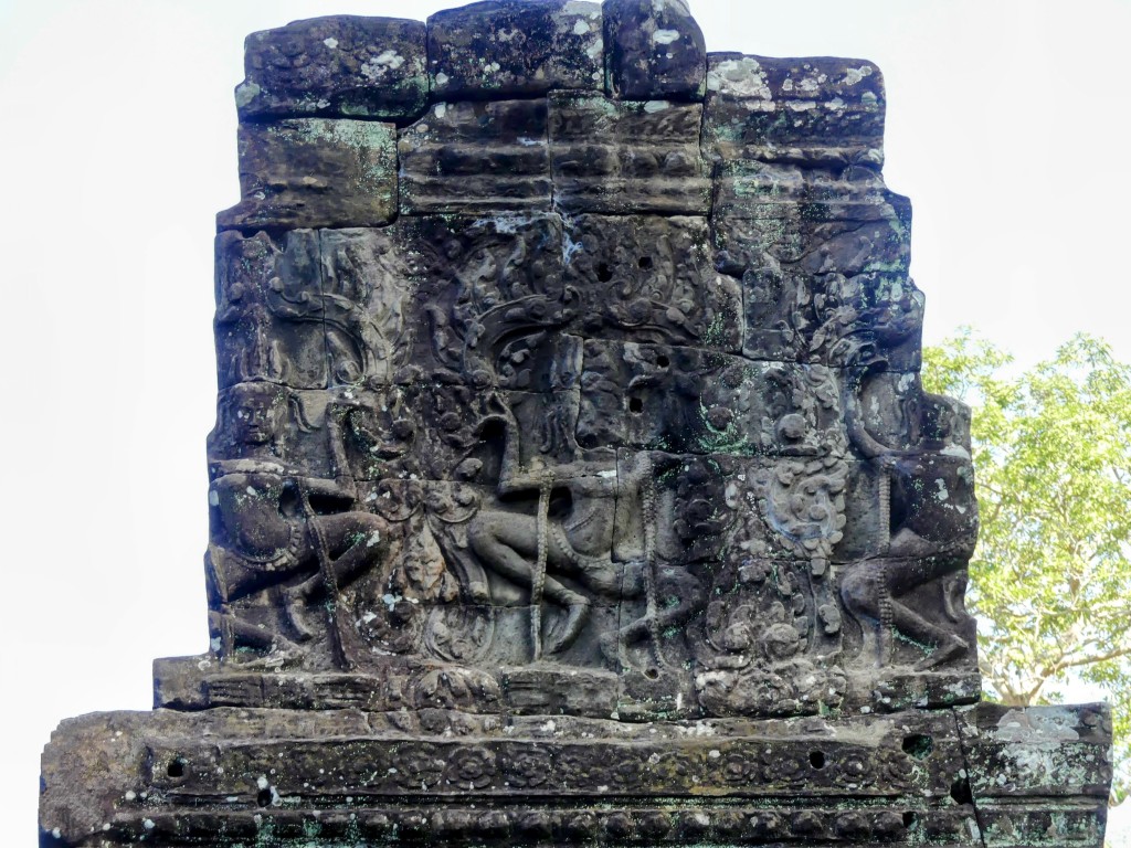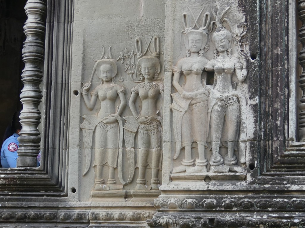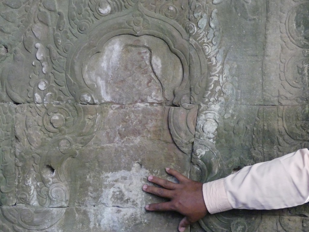 The construction of the temple is sandstone. Back in the day, over a million people lived in the area. As we walked through, our tour guide described the imagery carved into the walls. Images of Buddha were removed by Hindus.