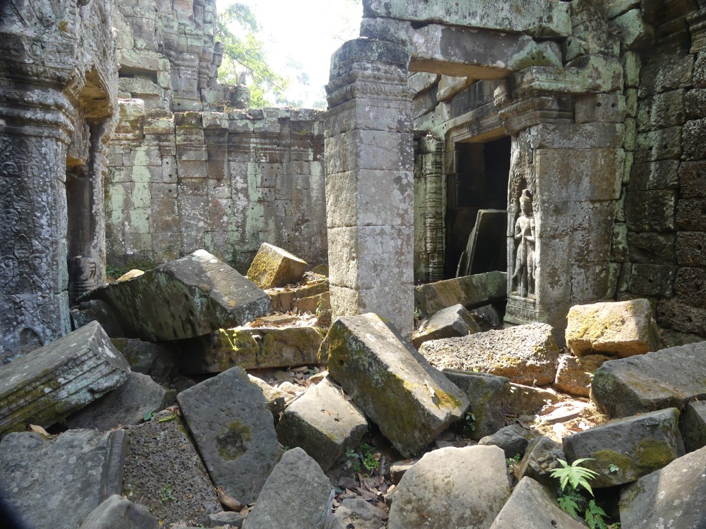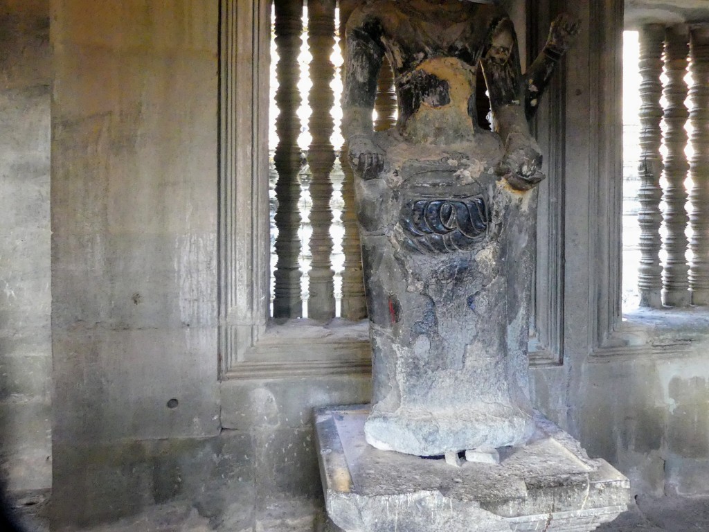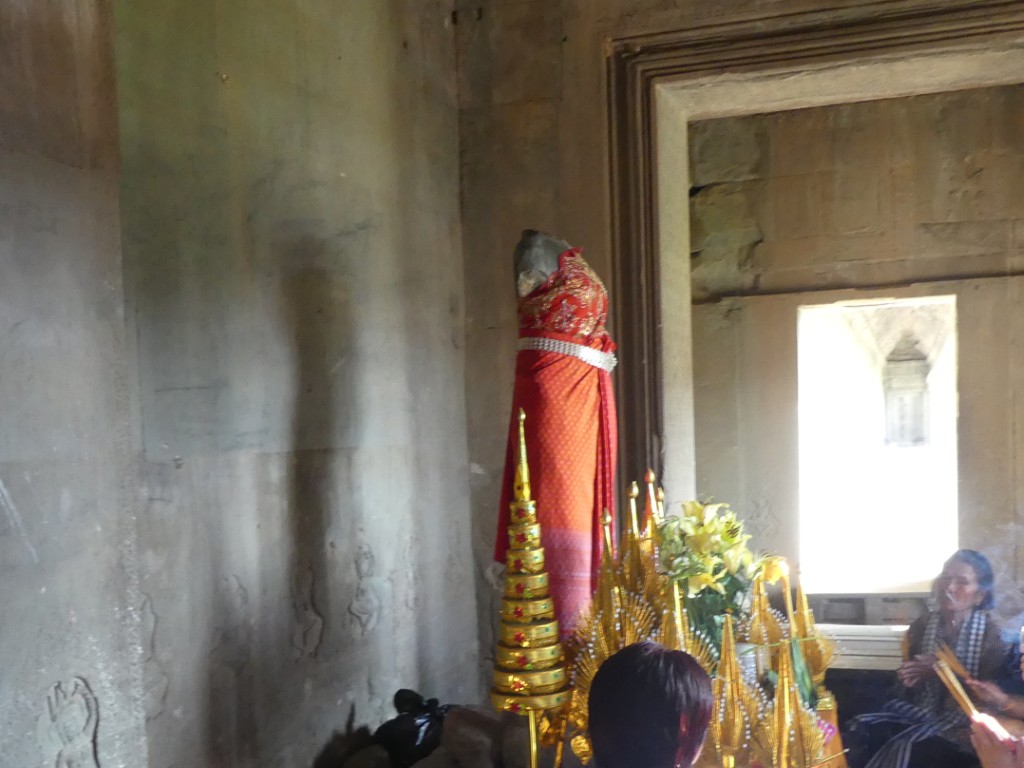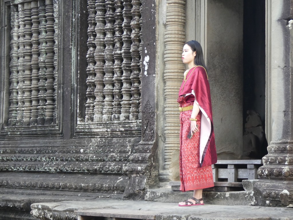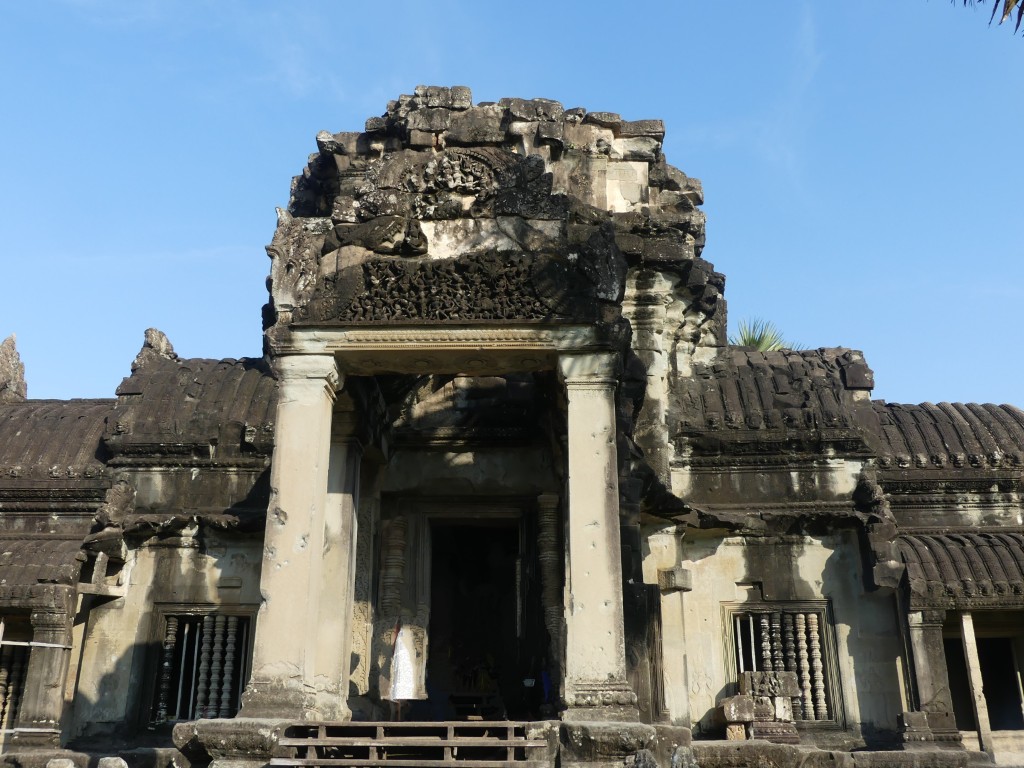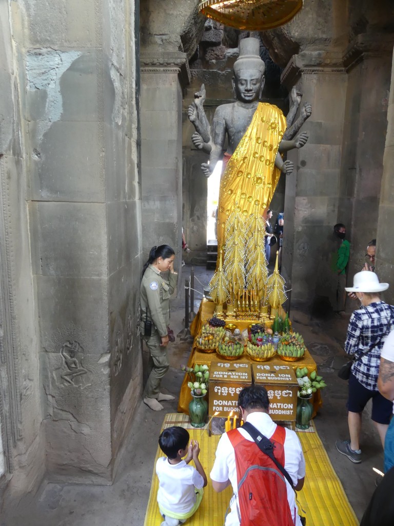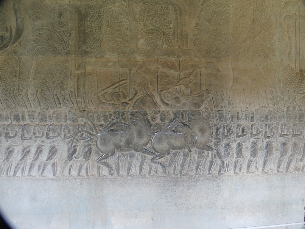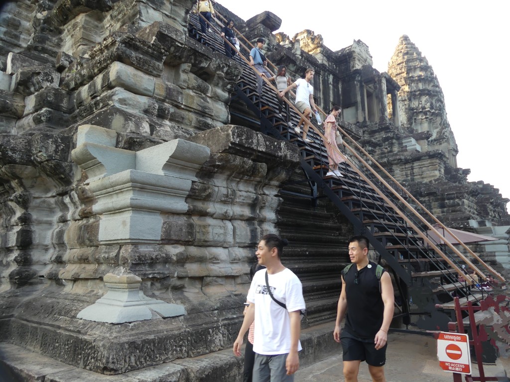 The construction of the temple is sandstone. Back in the day, over a million people lived in the area. As we walked through, our tour guide described the imagery carved into the walls. Images of Buddha were removed by Hindus.