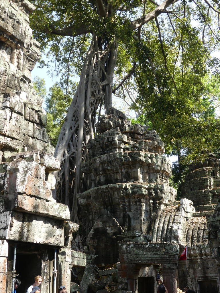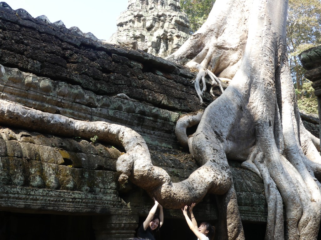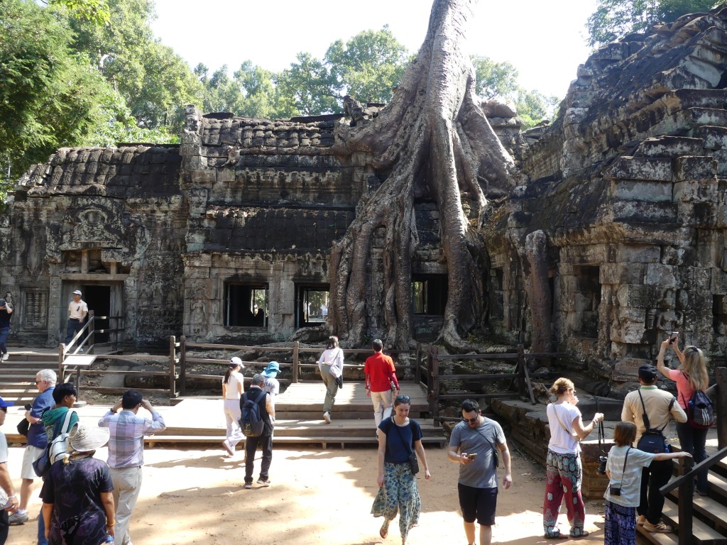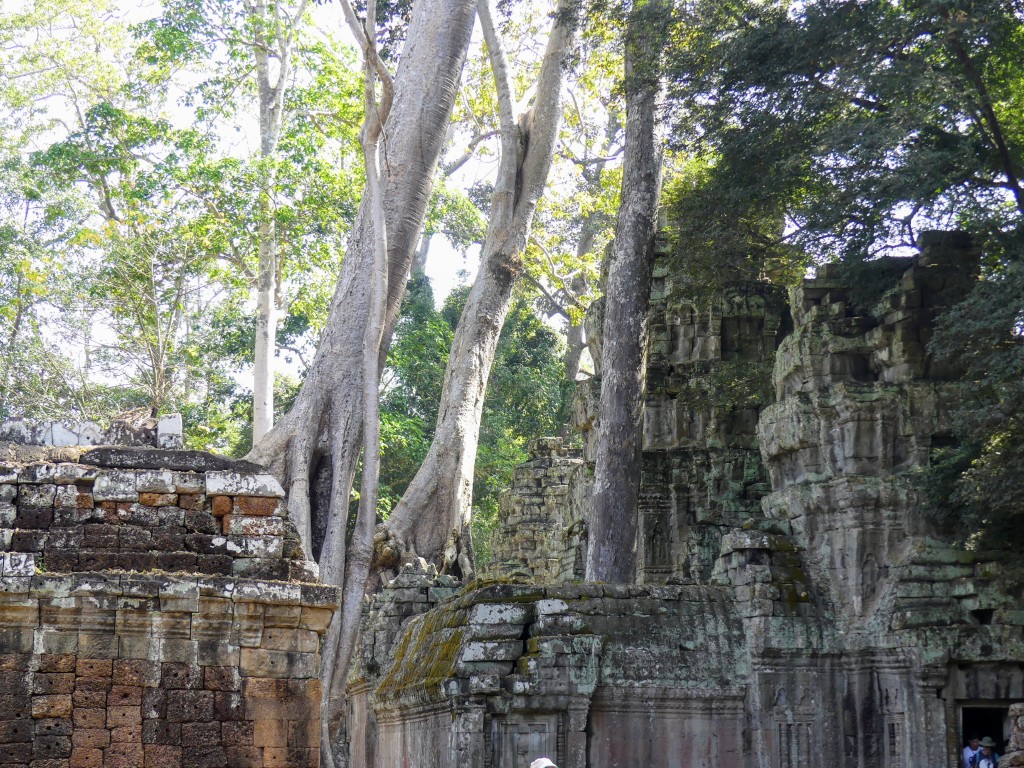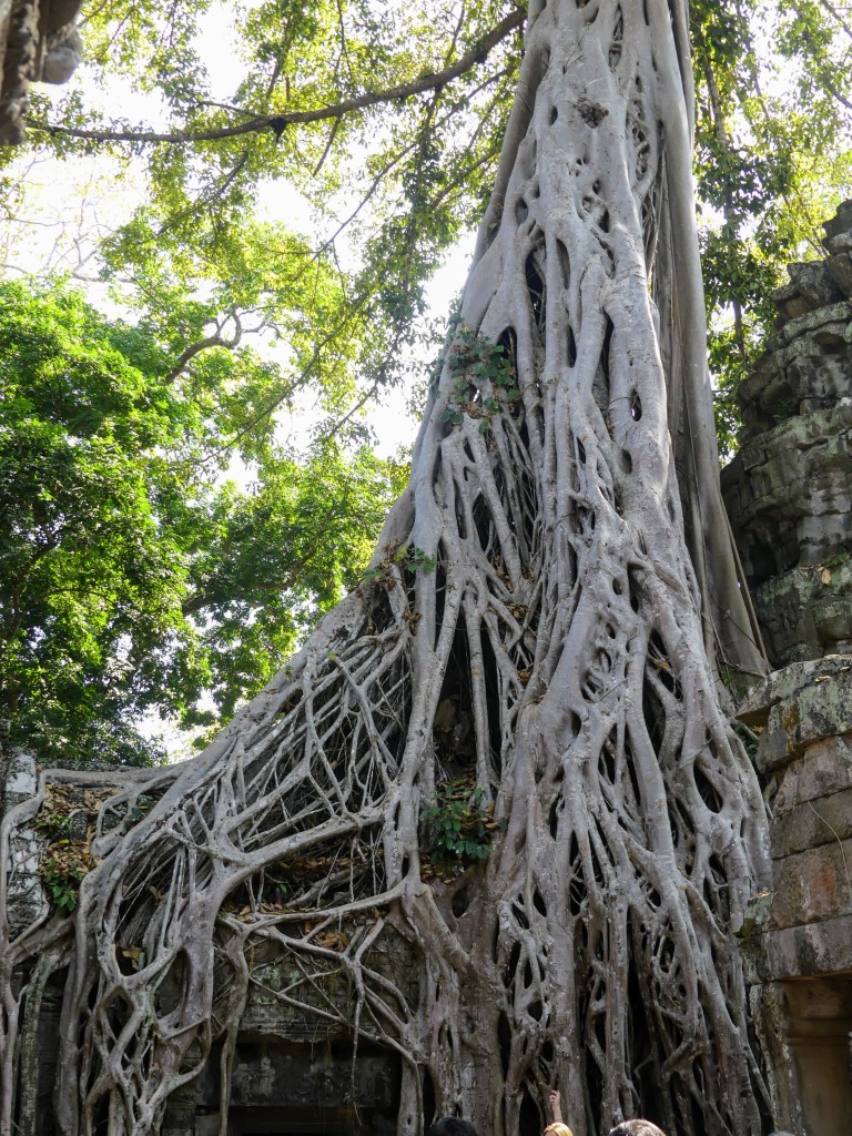 Buddha images within the temple were removed by Hindus. Both religions were practiced in Cambodia, which makes sense because of the ethnic composition of the Cambodian people. This was a very crowded temple, which made it a bit of a challenge to get decent pictures. Thank goodness for magic eraser! Obviously, the draw for the temple is the trees that have become part of the temple itself.