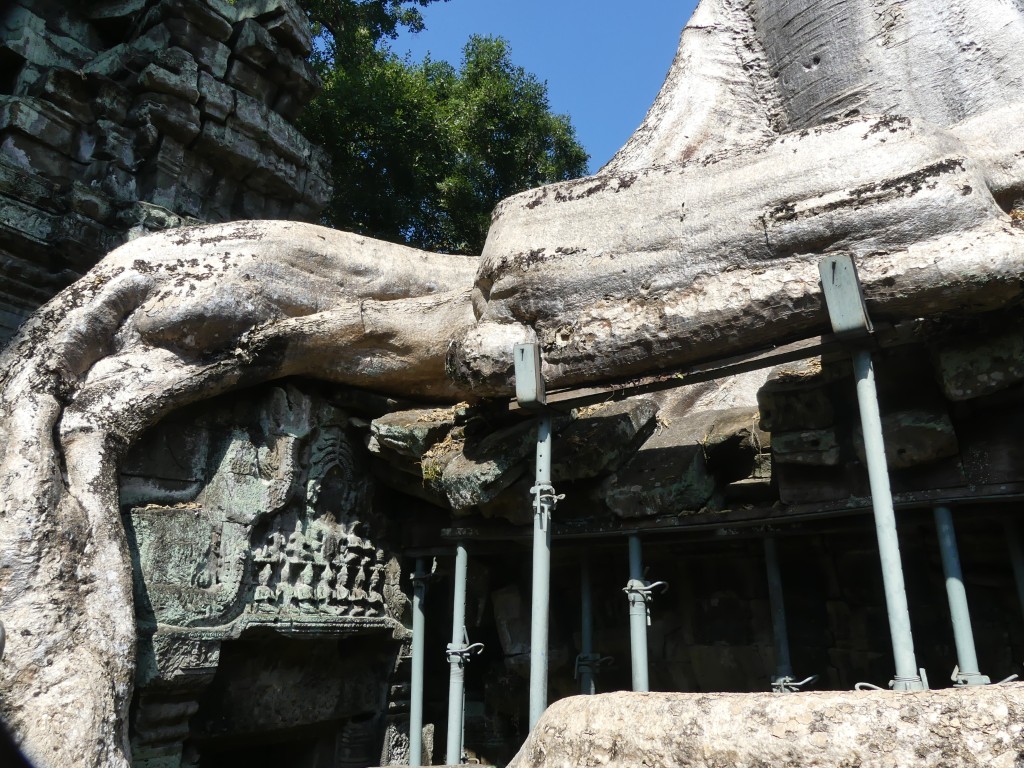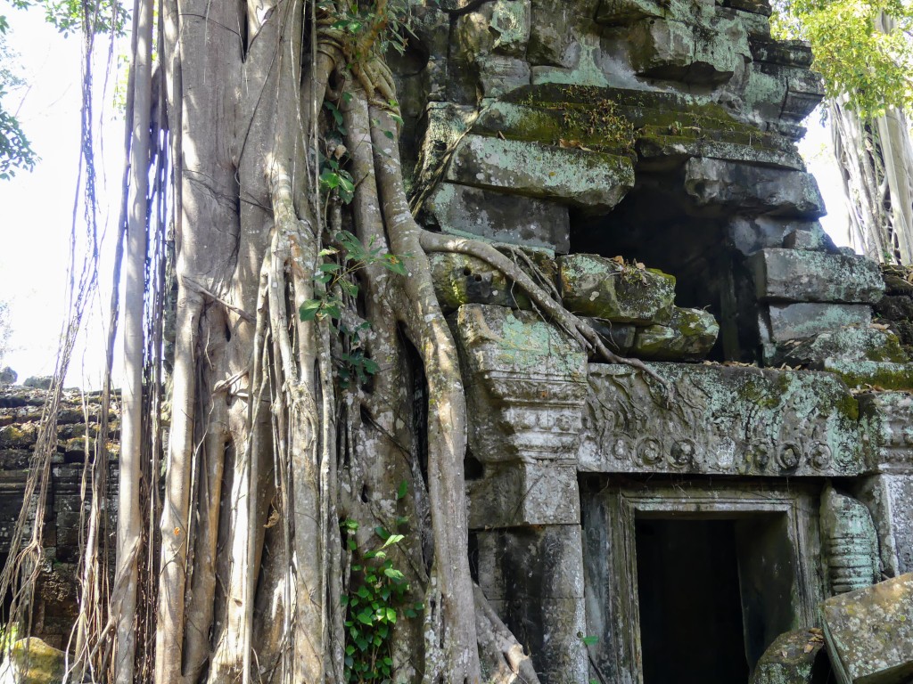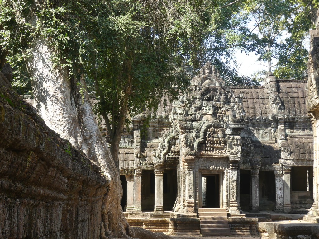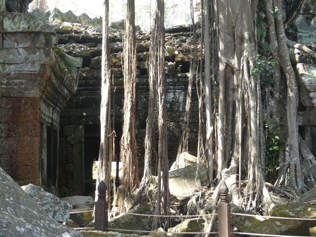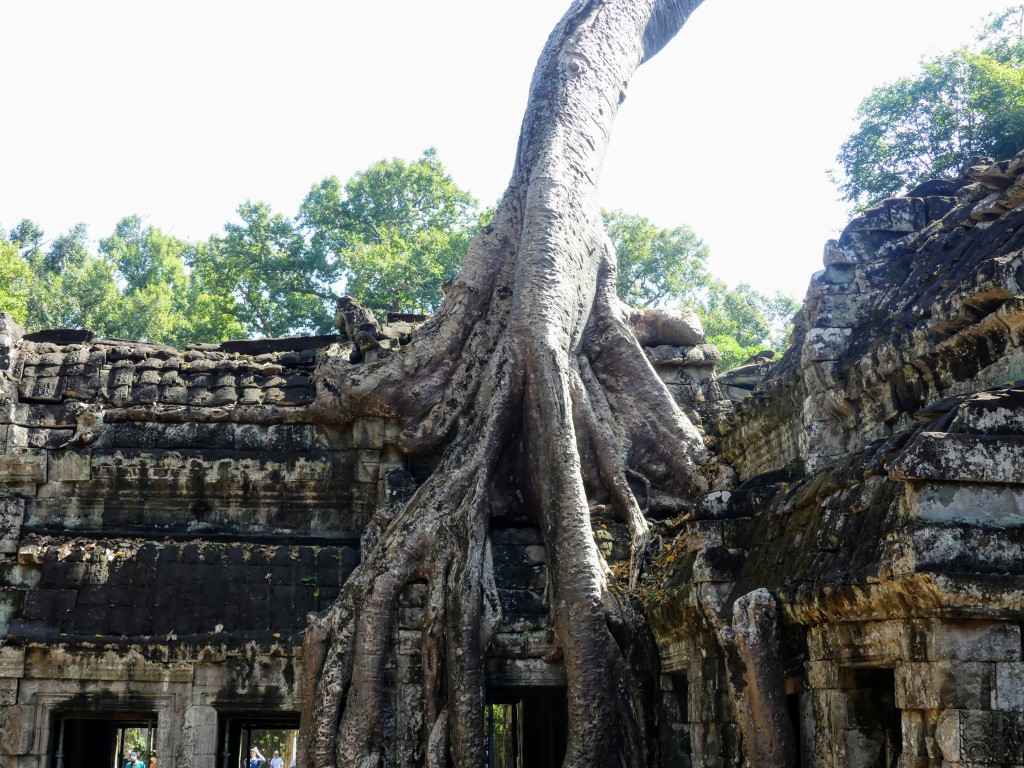 Buddha images within the temple were removed by Hindus. Both religions were practiced in Cambodia, which makes sense because of the ethnic composition of the Cambodian people. This was a very crowded temple, which made it a bit of a challenge to get decent pictures. Thank goodness for magic eraser! Obviously, the draw for the temple is the trees that have become part of the temple itself.