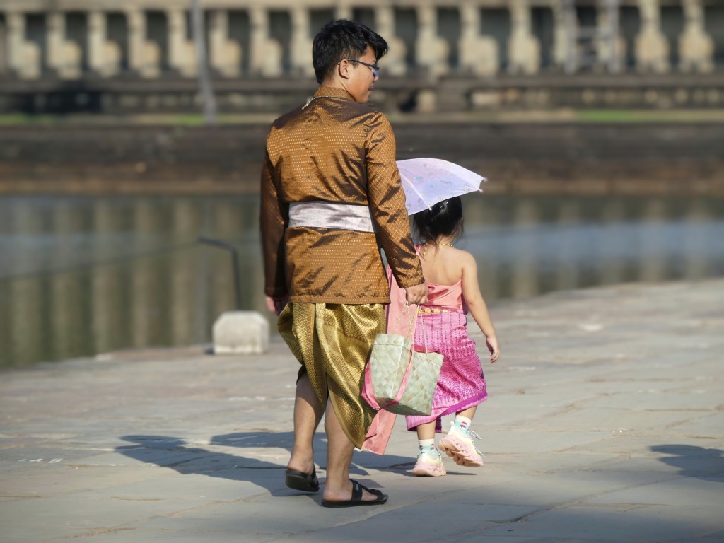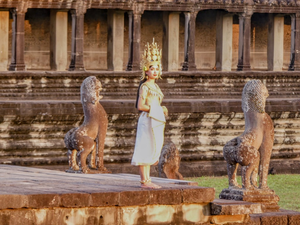 To get to the temple, you need to walk a short distance along a shaded path. There are musicians playing traditional music along the way; they are men that have been affected by land mines, and they use the money they collect to help other victims.