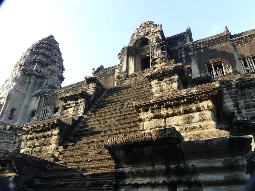 After viewing the temple, we stopped for lunch and then had a nice break at the hotel to rest up for our final stop on the tour, Angkor Wat. This temple was dedicated to the Hindu God Vishnu. It took 37 years to build, using a mere 385,000 workers, plus artisans and elephants.