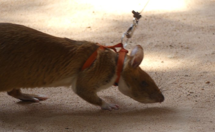 Landmines are inexpensive to make and lay (from $3 to $75) but expensive to remove (from $300 to $1000) and this is where the Hero Rats of Apopo come in. These rats are brought in from Tanzania, where they receive 9 months of training. They have a highly developed sense of smell (though are mostly blind) and can sniff out bombs buried up to 1 meter below the ground. If a bomb is more than 1 meter below the surface, a person can walk over it without it exploding. Each rat can check the area of a tennis field in 30 minutes. It would take a human 4 days to do the same.