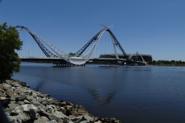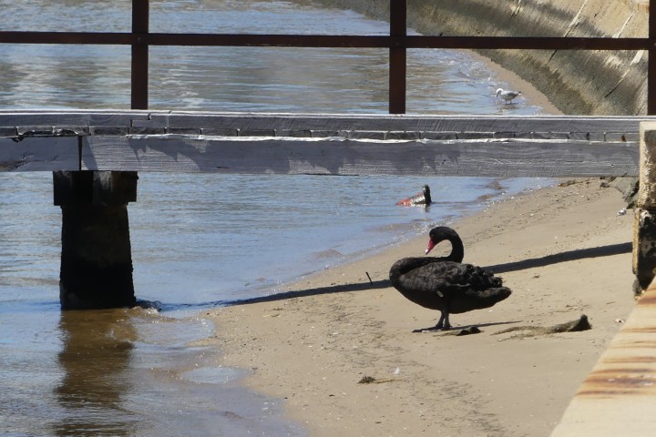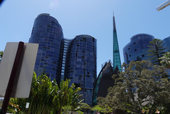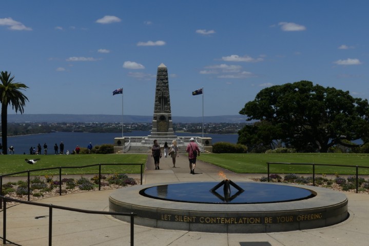 We stopped at King’s Park to take a few photos. We hoped to see dolphins in the river, but no luck. Sharks are predators of dolphins and so it is not safe to swim there. We were told that there were no longer black swans on the Swan River, but I spotted one.