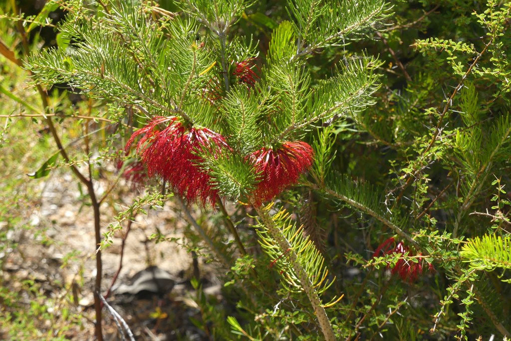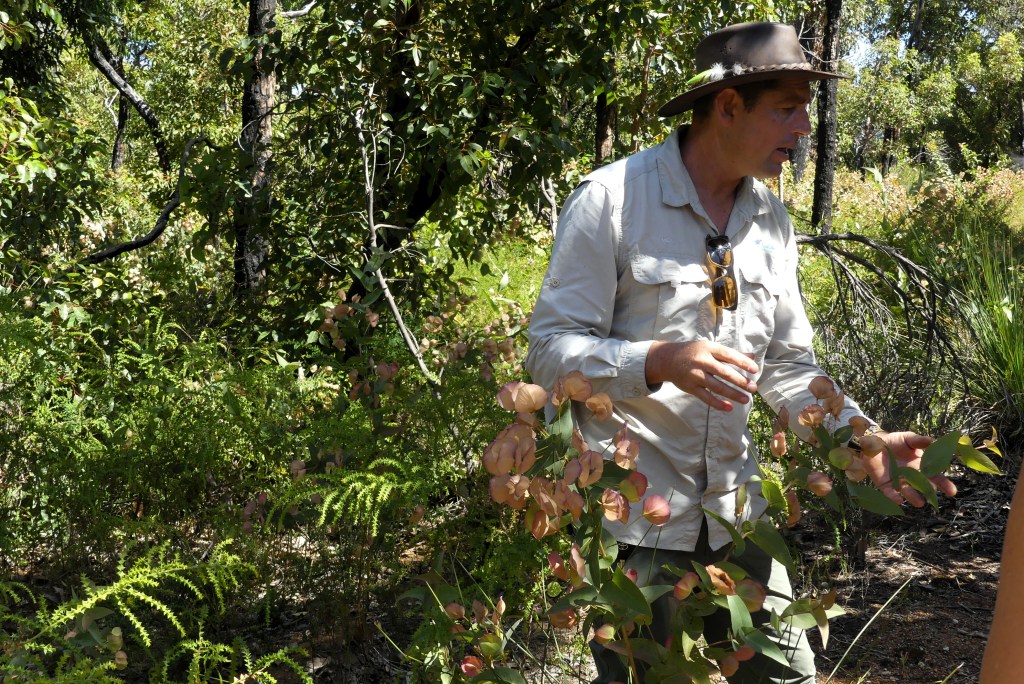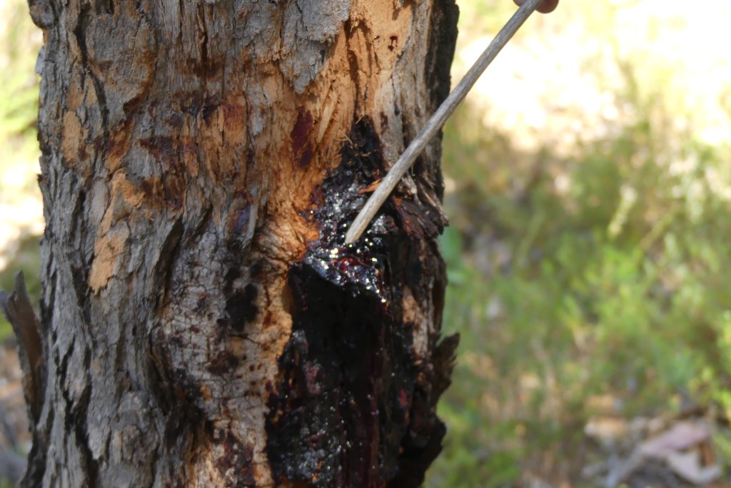 We reached our destination where Mick warned us to watch out for snakes. Oh, goody! We walked through woods and Mick pointed out various flora and fauna. The ones that I remember are the blood tree, which kills worms in kangaroos. The grass tree that he showed us was 300 years old and only grows 1 cm per year. He told us of the snotty gobble tree, easily the best name for a tree I have ever heard, so named for the snotty texture of its fruit!
