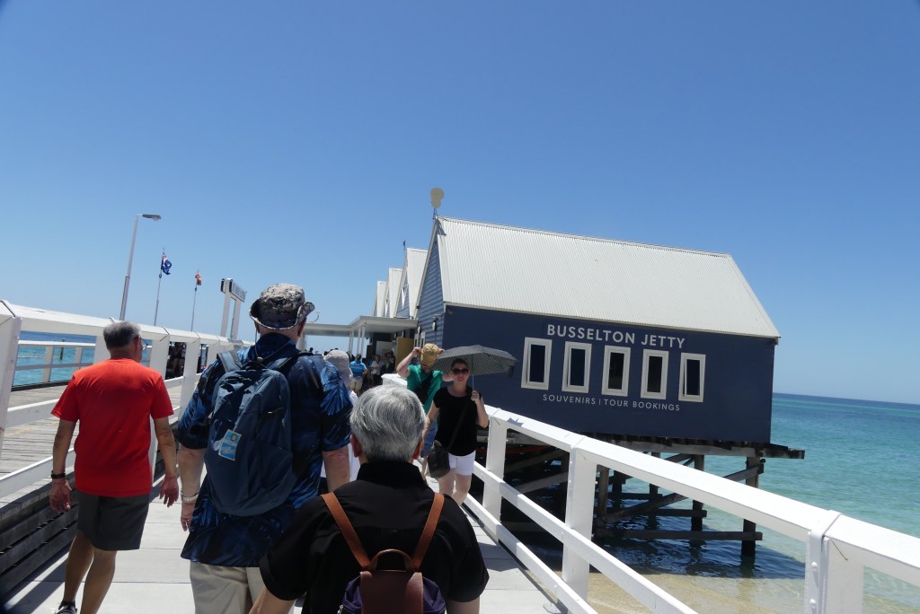 Busselton itself is a small city of 40,000. Timber logging is one of the main industries. Mick grew up in Dunsborough (which we drove through). Its population has grown from 500 to 12,000 in 35 years. Quite a change! We drove through the “Holy Mile”, a road filled with campgrounds owned by churches.