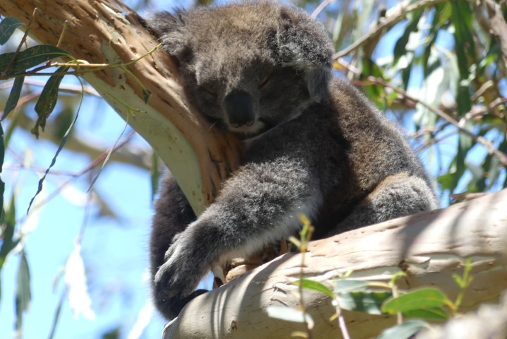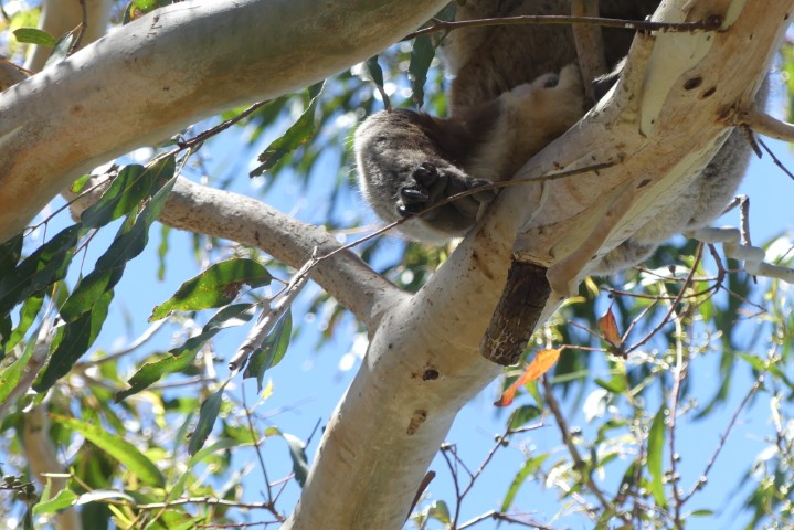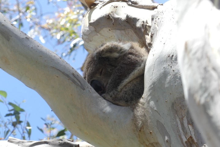 We drove back along the Great Ocean Road, which was very scenic. We stopped in a town by the ocean and were given time for lunch and shopping. After lunch, we were lucky enough to spot a tree with koalas napping.