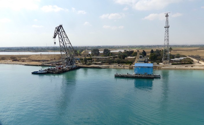 I can’t write too much about cruising the Suez Canal. It is nothing at all like the Panama Canal transit since there are no locks. The canal was built between 1859 and 1869 to provide a more direct route between the North Atlantic and northern Indian oceans. It is a 121 mile long canal. Because there are no locks, seawater flows through it freely. There are tides, and in general, the canal north of the Bitter Lakes flows north in winter and south in summer. South of the lakes, the current changes with the tides at Suez.