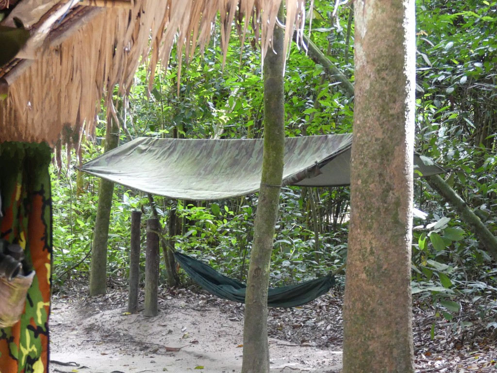 We were given steamed tapioca root to taste, which was what the Viet Cong ate while living in the tunnels. The kitchens were vented to the surface, but the vent could be up to 1000 feet away from the actual kitchen in order to hide its location. The tapioca root was much like baked potato in texture, but more bland in flavor.