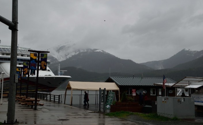 My brother lives in Juneau and so I was looking forward to our visit. I have not seen him for 7 or 8 years, and had asked him to take us out to Mendenhall Glacier, our traditional thing we do when my husband and I visit. It is very sad to see how much that glacier has receded compared to the first time I saw it. Our cloudy day had changed to steady rain so we put on our rain gear and headed off the ship (we arrived at 2 pm). I called Steve and he wasn’t feeling well so didn’t want to get together. I was extremely disappointed.