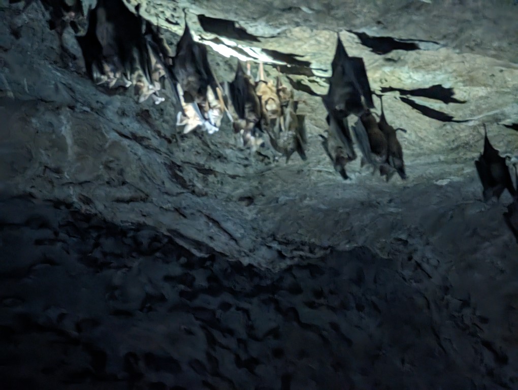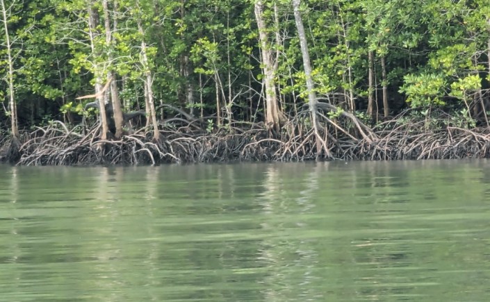 Our final stop was at the bat caves. The best part of the stop was watching the monkeys that hung out by the entrance. The caves themselves were nothing too spectacular. There were some bats hanging out on the ceiling of the first cave. There was a spot to look at the mangroves and our guide gave us lots of fascinating information regarding the trees. Unfortunately, by then, I was too tired and hungry to bother taking notes so can’t pass along any information. To get through the second cave involved crawling through the opening. As we left, the guide pointed out mud fish on the shore. We saw lots more mangroves as we headed back to the pier.