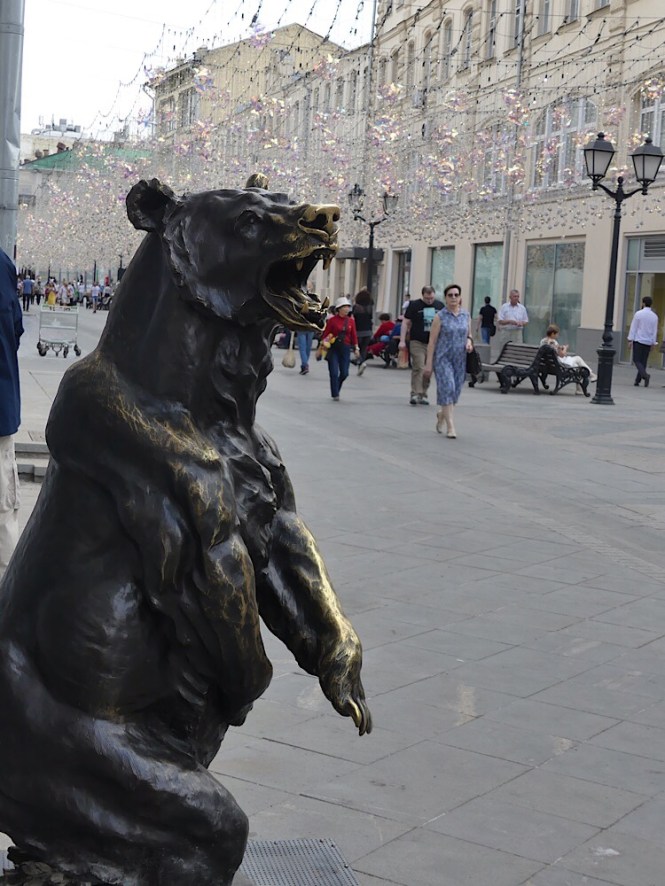 Just off of Red Square is a pedestrian street lined with shops. The decorations were sparkling in the sun. It was really beautiful; my pictures do not do it justice. I found a set of Putin matryoshka dolls; I was tempted but did my usual and cheaped out. I have quite a few souvenirs from our last trip to Russia in 2010 so didn’t feel too compelled to buy anything.
