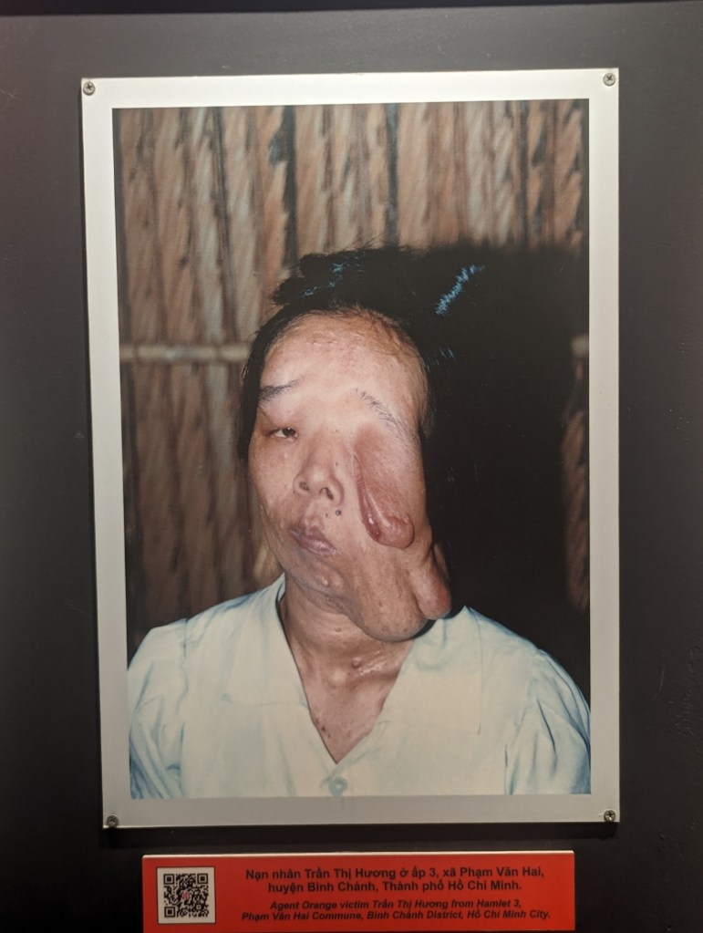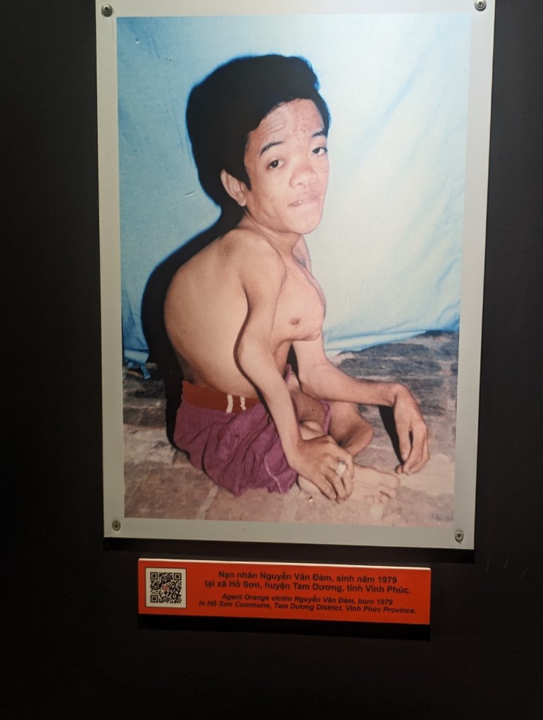 The War Remnants Museum is not for the faint of heart. The purpose is to show the effects of war to prevent such atrocities from happening again. The exterior has a variety of US planes, bombs, and other remnants of war on display. Inside, the displays are spread over three stories and each room has a theme. The focus is most definitely on what the Americans did to the Vietnamese, especially to civilians. The Agent Orange room was the most disturbing to me. I had learned on a previous visit that the effects have spanned four generations. As you can see from the pictures, agent orange had devastating effects on innocent people. One of the rooms traced the history of the events leading up to the war. Though the United States joined the war in the mid-60’s, the roots of the conflict were sown in the French Colonial period during the late 1800’s.