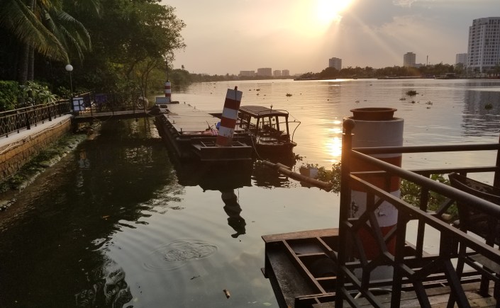 After lunch we grabbed a Vinasun cab back to our hotel. Later in the day we took the hotel’s shuttle boat back in to town. One thing that is very noticeable is that there are no pleasure craft on the river. The only other boats were “working” boats, boats that were hauling loads of various items. And, there were very few of those. Unlike Bangkok where there are numerous types of boats that to transport people up and down the river, there is only one company here that does so, and it just started service in November.